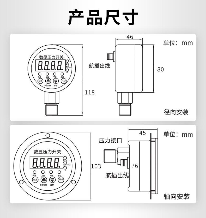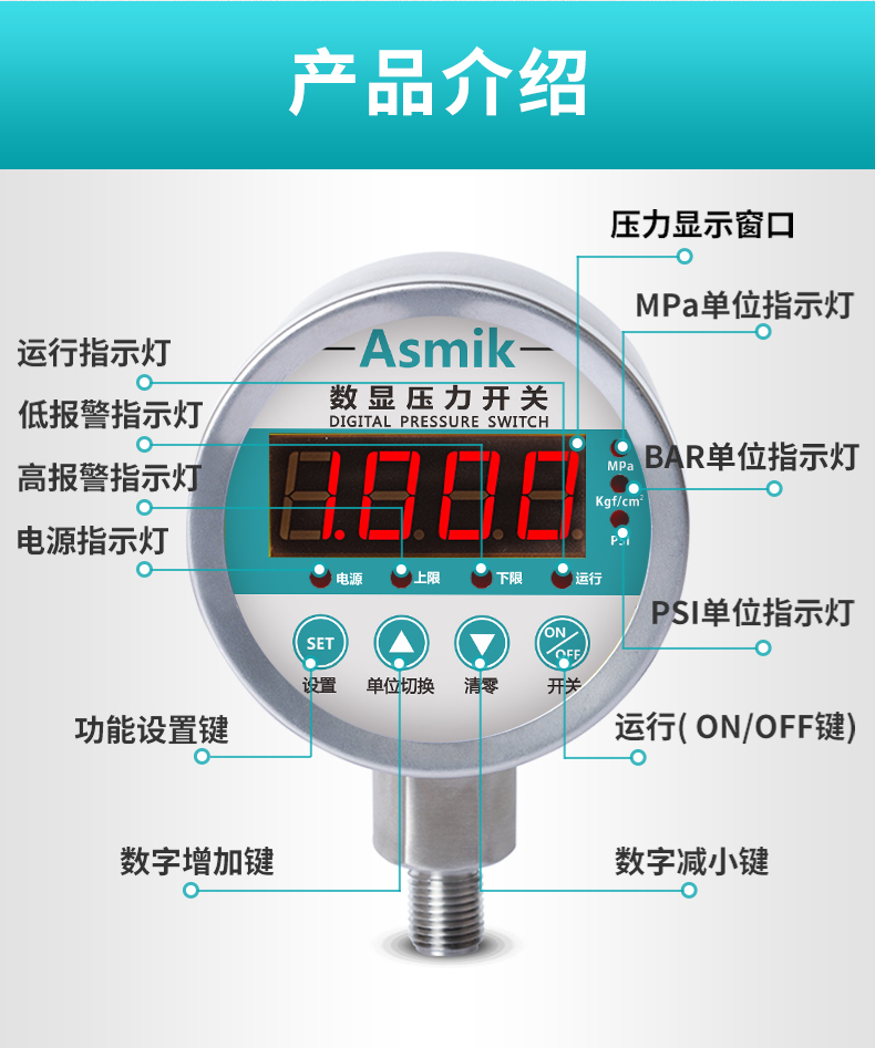 適用場(chǎng)合:數(shù)顯壓力開關(guān)設(shè)計(jì)為控制油壓、氣壓、水壓的兩路獨(dú)立的壓力監(jiān)控。并輔以報(bào)警方式選擇、密碼保護(hù),延時(shí)報(bào)警、誤差清零、采樣速率可調(diào)等功能,使該產(chǎn)品更準(zhǔn)確更智能的實(shí)現(xiàn)壓力報(bào)警和控制。
