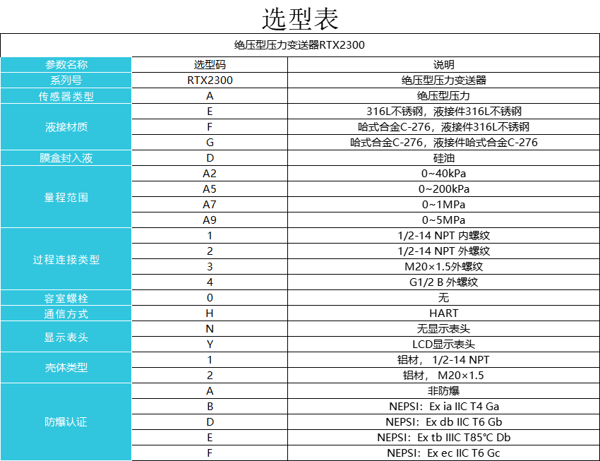 適用場合:RTX2000壓力變送器可具有多樣化組態功能,自帶的三按鍵對變送器進行組態調整,可設置如阻尼時間,恒流輸出、報警選擇、顯示單位、置零、以及傳感器檢測等,亦可通過HART進行組態,可實現遠程監控和訪問。是工業壓力變送器是石油、石化、環保、電力、冶金、煤化工等行業壓力測量應用的理想選擇。