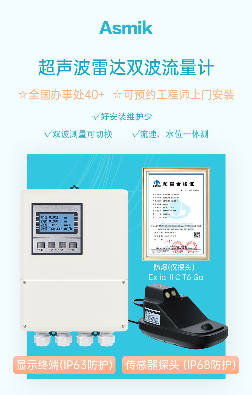 FAC300超聲波雷達雙波流量計/液位