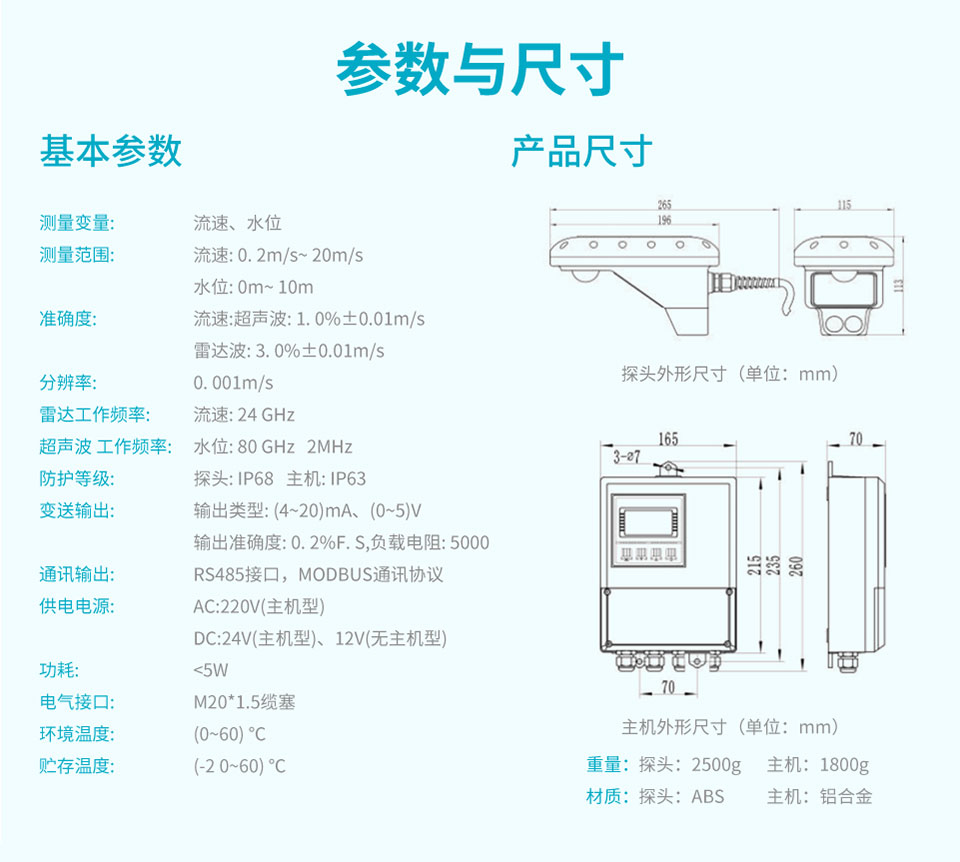 適用場合:FAC300超聲波雷達雙波流量計,是一款應用在自然水域、渠道或管道中測量水的流速、水位的產品。產品高度集成了雷達測流和超聲波測流優勢,實現滿管非滿管全場景測流,同時兼具雷達產品頂部安裝運維量極低的特點,也因此得以輕松應對復雜惡劣的管網工況。